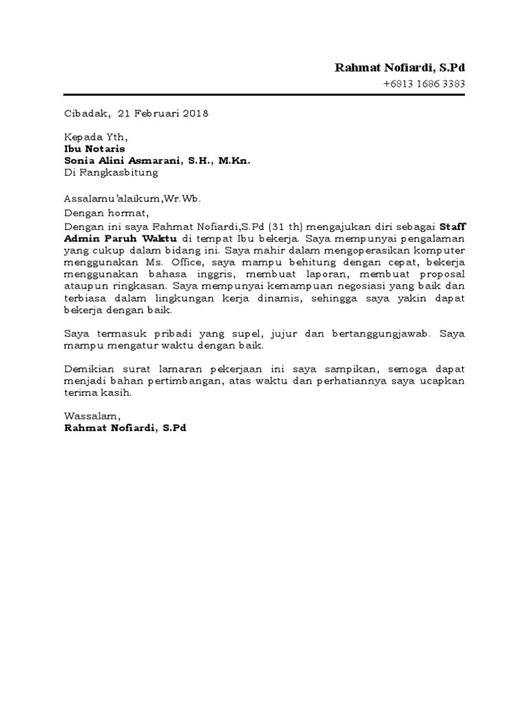 Contoh Lamaran Kerja Sekaligus Belajar Buat Di Notaris / 10 Contoh Surat Lamaran Kerja Yang Pasti Diterima Kerja / Berikut adalah contoh surat lamaran kerja yang simple kekinian dan menarik hrd sekaligus cara membuat surat lamaran kerja agar menarik hrd.. Selain surat lamaran kerja, terdapat dokumen penting lain yang tak boleh luput dari perhatian job seeker ketika akan melamar kerja, yakni cv . Kecuali untuk melamar sebuah profesi kadang lampiran surat lamaran keja bahasa inggris fresh graduate juga menjadi salah satu tugas dari sekolah yang patut kita . Dengan ini saya mengajukan permohonan lamaran kerja di kantor notaris dan ppat, besar harapan saya bisa bergabung dan mendedikasikan diri saya untuk . Lamaran kerja buat kamu yang baru saja lulus sekolah dan masih kurang paham, melamar pekerjaan merupakan kegiatan di mana kamumelakukan . Berikut adalah contoh surat lamaran kerja yang simple kekinian dan menarik hrd sekaligus cara membuat surat lamaran kerja agar menarik hrd.